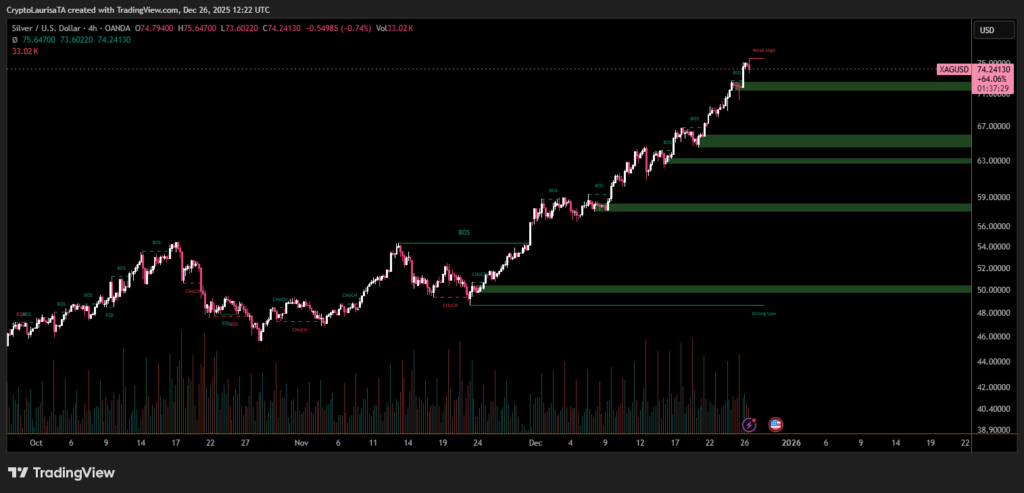 Monetary conditions continue to reinforce silver’s upside. Markets have already absorbed a series of U.S. Federal Reserve rate cuts and are increasingly pricing in additional policy easing in 2026. Lower interest rates reduce the opportunity cost of holding non-yielding assets, enhancing silver’s relative attractiveness amid expectations of prolonged accommodative policy.