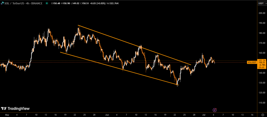 Despite short-term volatility, technical indicators show early signs of recovery, with SOL forming a mini uptrend in the final hour of trading on July 4.