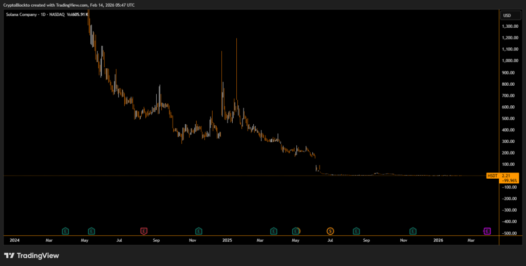 Despite Friday’s rebound, the stock remains down about 90% since its strategic pivot to a Solana-focused treasury model last September. Solana Company currently holds approximately 2.3 million SOL, valued near $200 million, making it the second-largest publicly traded holder behind Forward Industries.