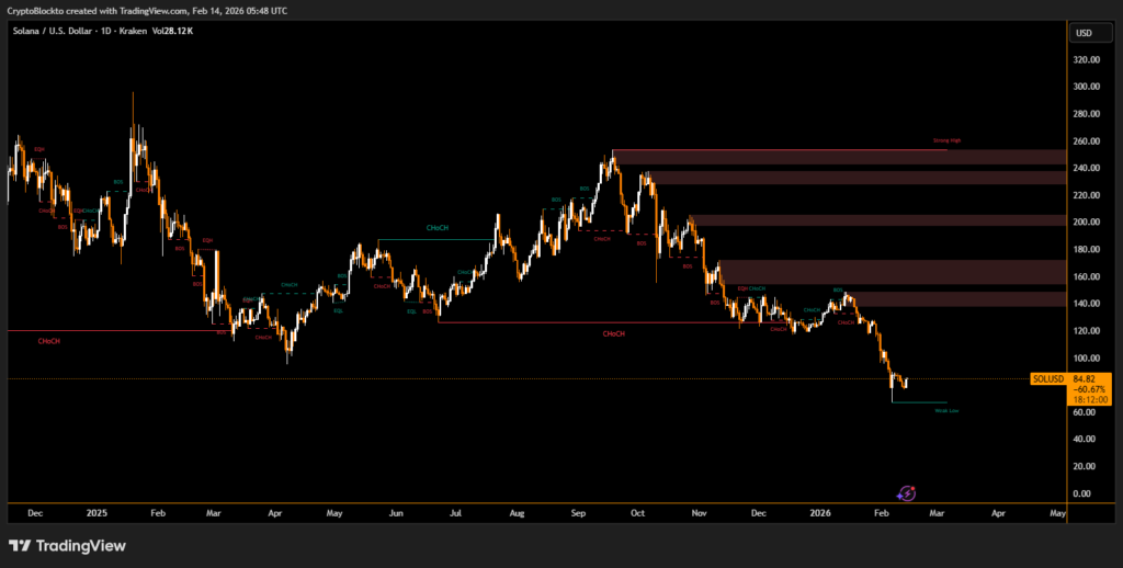 SOL prices have fallen sharply from around $245 at the time of the company’s rebrand to roughly $70 last week, before recovering toward the mid-$80 range. The decline has pressured corporate balance sheets across the sector.