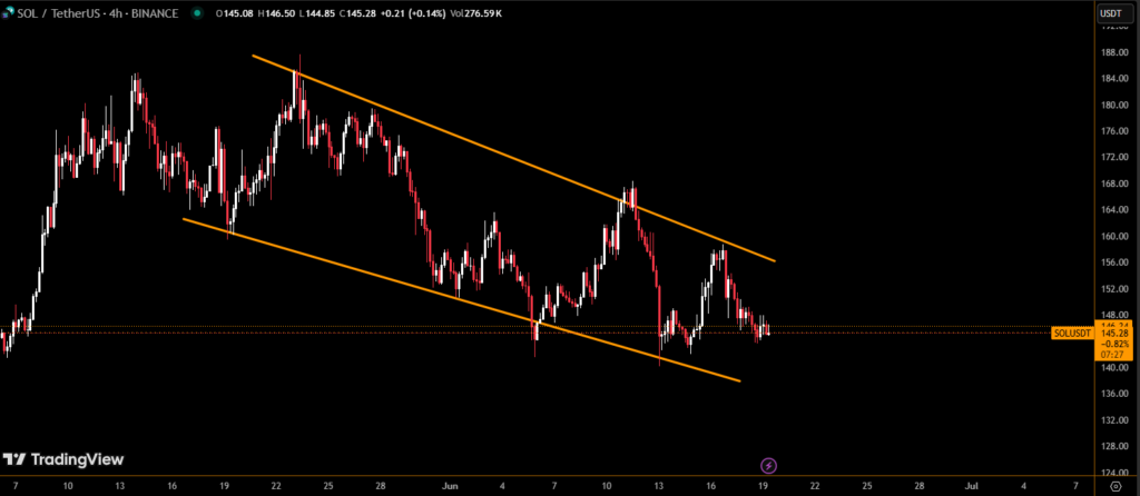 Solana is currently range-bound between $140 and $160, with $140 acting as a key support level. Technical analysts believe this price compression may be forming a bullish structure.