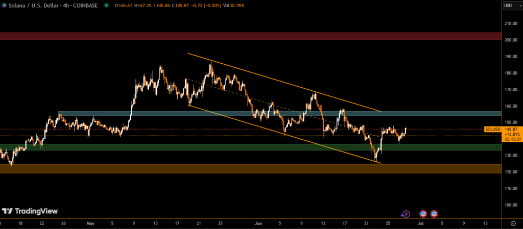According to analysts, Solana’s recent bounce back from a false breakdown below key support suggests that bullish momentum is still in play. The formation of a higher low reinforces this, potentially setting the stage for a move toward the $155–$160 resistance range in the near term.