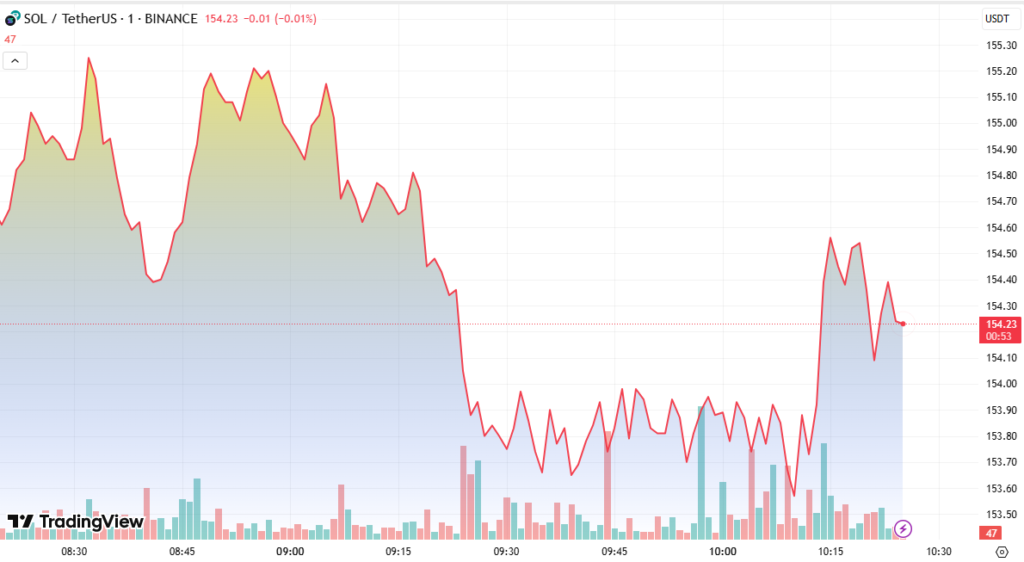Solana (SOL) slipped more than 5.3% in the past 24 hours, falling from $163.72 to $154.99, as global macroeconomic fears and declining memecoin activity weighed heavily on the token’s performance. The drop pushed SOL below its critical $160 support zone, raising concerns among traders about sustained bearish pressure.