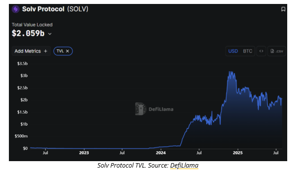 Solvâs protocol already commands over $2 billion in total value locked (TVL), according to DefiLlama, positioning it as a leading DeFi platform entering the Bitcoin yield space.