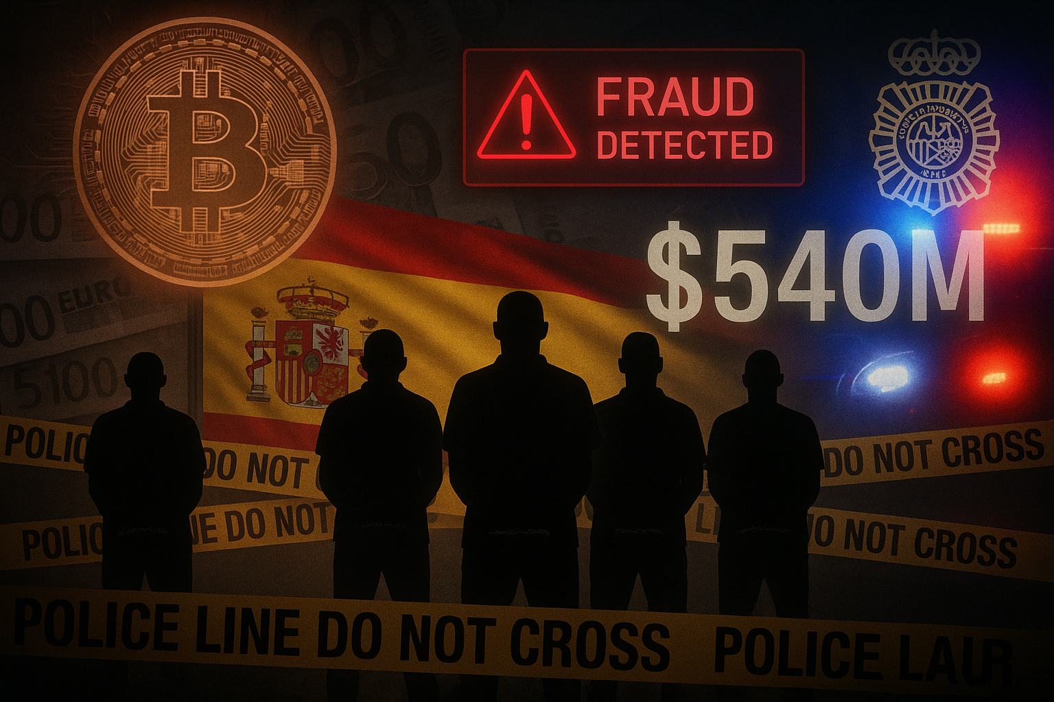 Spanish law enforcement has arrested five individuals in connection with a massive crypto fraud operation valued at over $540 million, impacting more than 5,000 victims worldwide. The arrests mark one of the most significant crypto-related criminal busts in Europe in recent years.