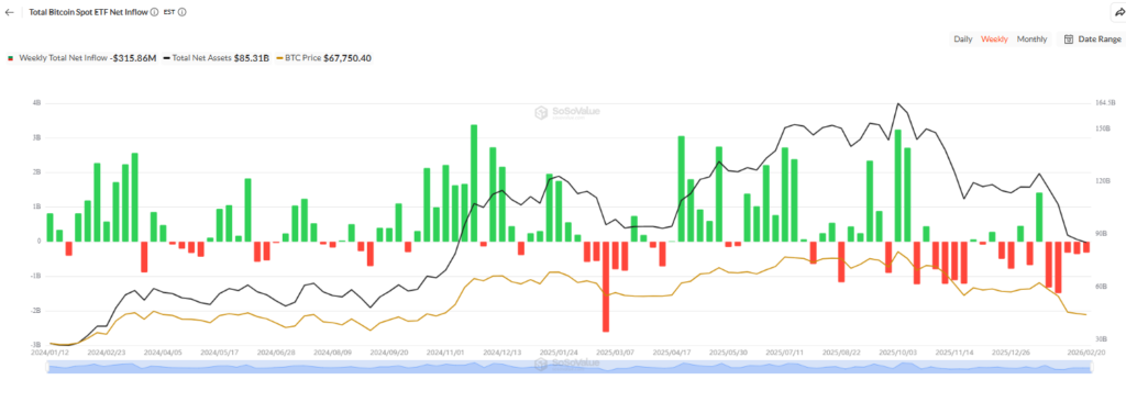 The largest weekly outflow during the streak occurred in late January, when investors withdrew roughly $1.49 billion. While certain trading sessions saw inflows including an $88 million gain on Friday these were offset by heavier redemption days earlier in the week.