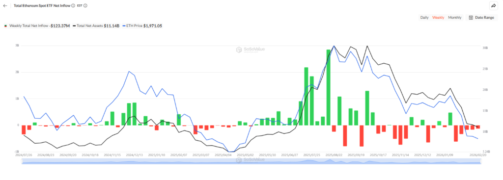 Meanwhile, spot Ether ETFs have mirrored the trend, recording $123.4 million in net outflows last week despite isolated inflow sessions. Market participants say ETF flows will likely remain sensitive to upcoming economic data and broader macro developments.