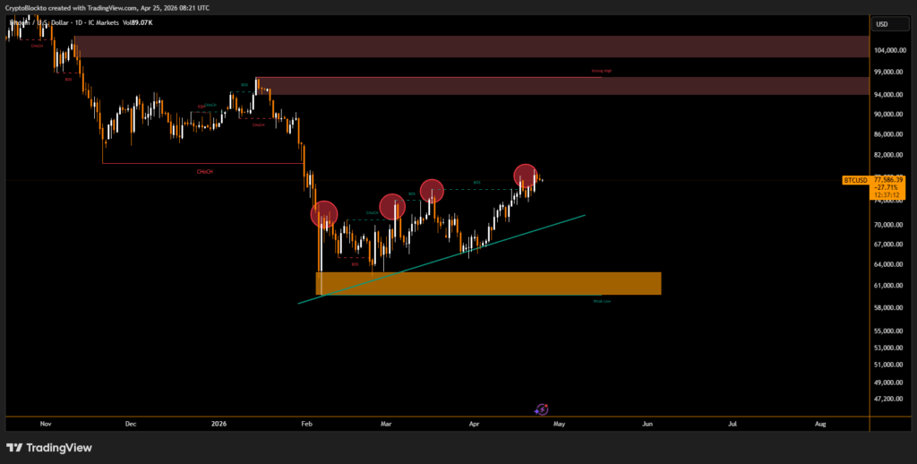 The sustained ETF inflows coincide with improving Bitcoin market performance, with Bitcoin trading around $77,581 and gaining roughly 10.73% over the past month. The nine-day inflow streak marks the first similar run since October, when earlier ETF inflows surged sharply across multiple sessions.