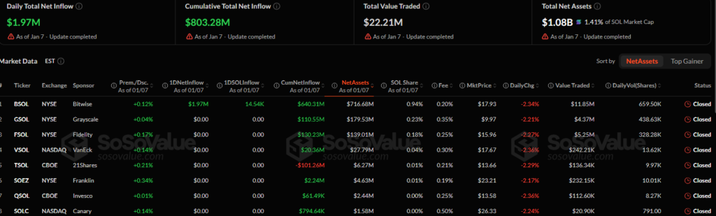 According to data from SoSoValue;