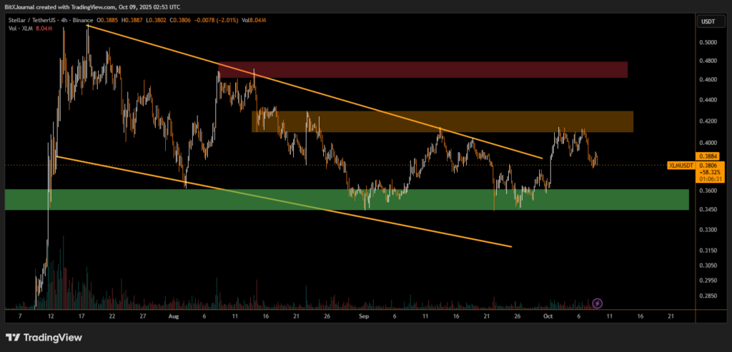 “Stellar has held its structural base well despite broader market volatility,” According to BITX technical analysts. “The recovery above $0.38 is a constructive signal — a sustained close over $0.40 could open the door to a retest of $0.43 in the near term.”