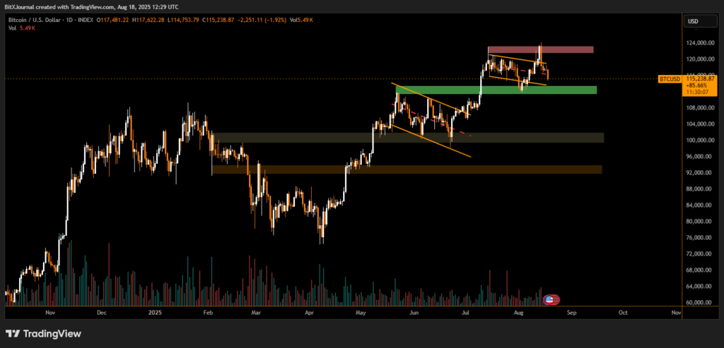 Bitcoin reached a new all-time high above $124,000 last Wednesday, driven by surging institutional demand and growing acceptance of BTC as a hedge against inflation. However, the rally quickly reversed, with prices dipping to $115,000 by Sunday, highlighting the asset’s notorious volatility.