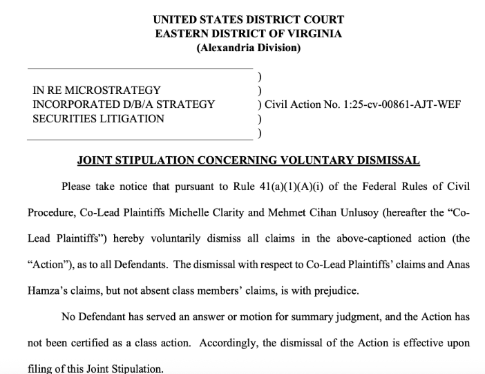 The high-profile lawsuit against Bitcoin treasury giant Strategy has been officially dismissed, marking a significant victory for crypto treasury firms. According to a recent court filing, the plaintiffs and an investor group voluntarily ended the case, permanently closing the door on future legal action related to these claims.