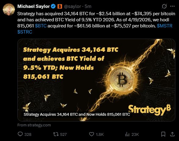 Strategy Inc. has made one of its largest acquisitions to date, purchasing about $2.5 billion worth of Bitcoin in a single week, totaling 34,164 BTC. The move reinforces its shift from enterprise software to a dedicated Bitcoin accumulation strategy funded through equity and perpetual preferred share offerings, including STRC.