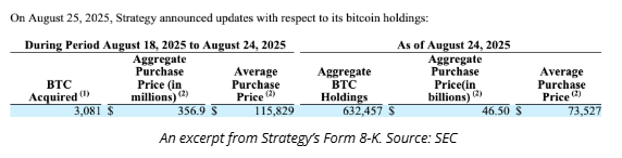 Despite this large acquisition, Strategy’s Bitcoin buying pace slowed in August. The firm has bought 3,666 BTC this month, significantly lower than 31,466 BTC in July and 17,075 BTC in June.