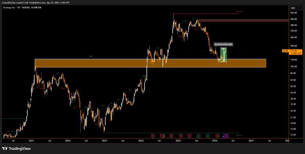 The MSTR/BTC ratio has increased about 30% since January 2026 after forming a local bottom, even as Bitcoin fell nearly 39% in the same period. Analysts view this divergence as a possible early signal of a recovery phase, similar to patterns observed before Bitcoin’s 2022 cycle bottom.