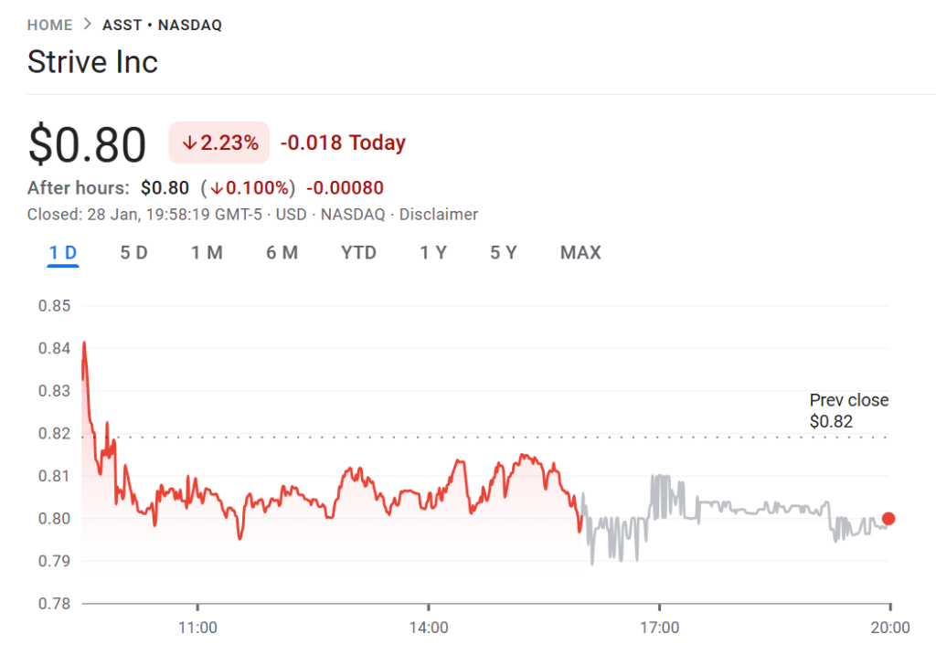 strive shares falling 2.23% to $0.80