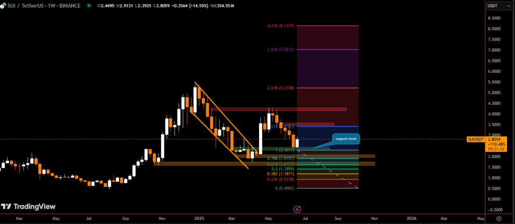 SUI’s recent price action has caught the attention of technical traders. After weeks of downward consolidation, the token has bounced from a historical support area that previously triggered bullish moves.