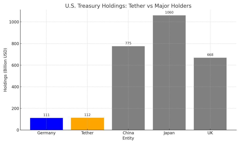 Tether (USDT), the world’s largest stablecoin issuer, has made headlines once again — this time by surpassing Germany in its holdings of U.S. Treasury bills, reaching over $111 billion. This remarkable milestone positions Tether as one of the largest holders of U.S. government debt, a status traditionally dominated by major economies and central banks.