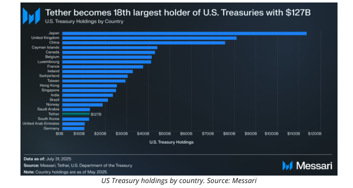 Tether now holds more U.S. government debt than major economies like South Korea, Norway, and Brazil.
