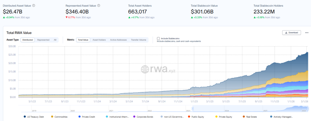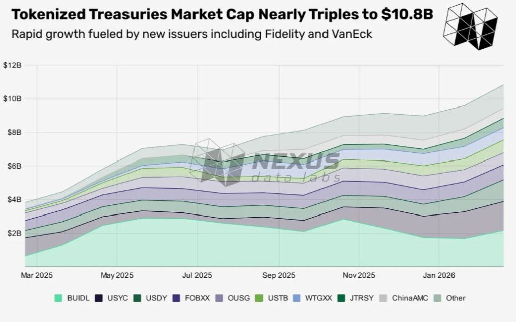 Six categories now exceed $1 billion each, including U.S. Treasuries, commodities, private credit, institutional alternative funds, corporate bonds, and non-U.S. government debt. The number of tokenized U.S. Treasury offerings alone increased from 35 to more than 50 in the past year, signaling growing institutional adoption.