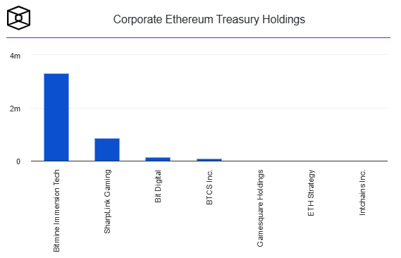 On Monday, BitMine disclosed that its corporate treasury had exceeded the 3.3 million ETH milestone, placing it just behind Michael Saylor’s Strategy as the second-largest crypto treasury overall. The firm aims to eventually accumulate 5% of Ethereum’s total circulating supply, signaling its long-term conviction in the network’s role in global finance.