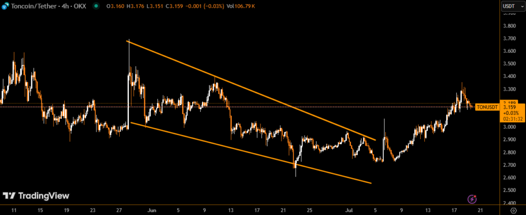 Despite the significant technical upgrade, the TON token saw a slight dip in price during the past 24 hours. As of this writing, TON is down 1.73% to $3.1696, with intraday lows reaching $3.1412.