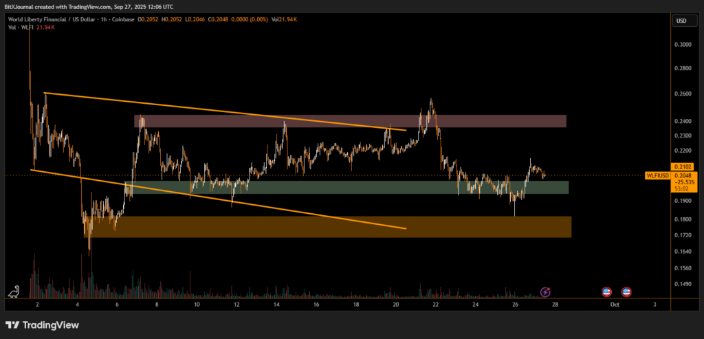 This move comes after WLFI’s price dropped 33% over the past month. As of Saturday, the token trades at $0.2049, recovering over 6% in 24 hours, though it remains down 38% from its all-time high.