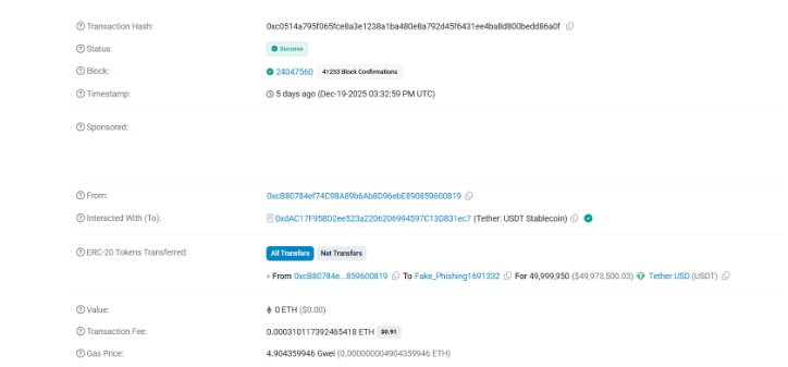 $50M address poisoning transaction, wallet 0xcB8