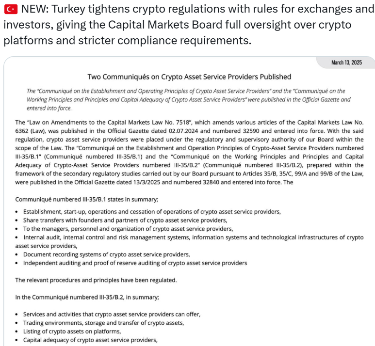 This move is part of Turkey’s broader effort to align with international regulatory frameworks, especially the EU’s MiCA (Markets in Crypto-Assets) regulation.