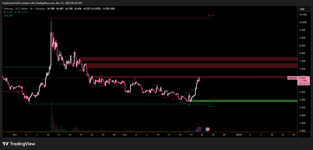 The price increase coincided with the start of voting on the “Unification” proposal, a plan designed to align Uniswap Labs, the Uniswap Foundation, and the governance community under a shared economic framework. The proposal focuses on activating protocol-level fees and distributing incentives in a more coordinated manner.