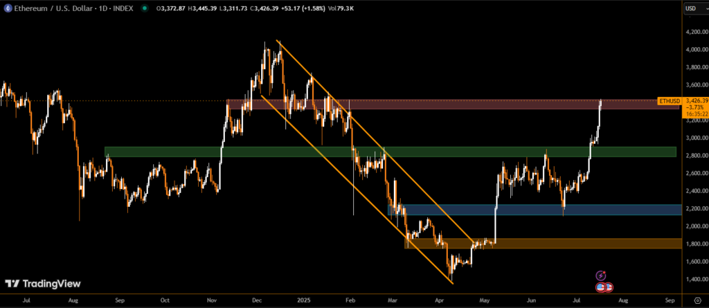 In a striking contrast, Ethereum’s network issued only $6.74M worth of ETH in the past 24 hours, while spot ETFs absorbed nearly 107 times that amount. This supply-demand imbalance could fuel further upward price pressure on ETH.