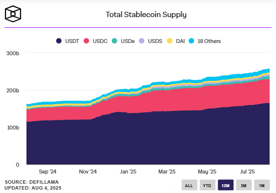 The overall dollar stablecoin market has grown for seven consecutive months, expanding from $200 billion in January to $257 billion in early August. USDe’s share of that growth signals a major shift in investor preference toward yield-bearing digital dollars backed by transparent and regulated mechanisms.