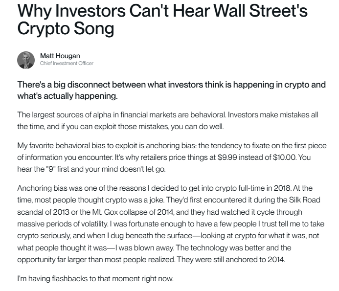 Institutional enthusiasm for blockchain based finance is accelerating, but many traditional investors remain hesitant to reposition their portfolios. According to Bitwise Asset Management Chief Investment Officer Matt Hougan, financial markets are steadily moving on-chain even as skepticism lingers across the broader investment community.