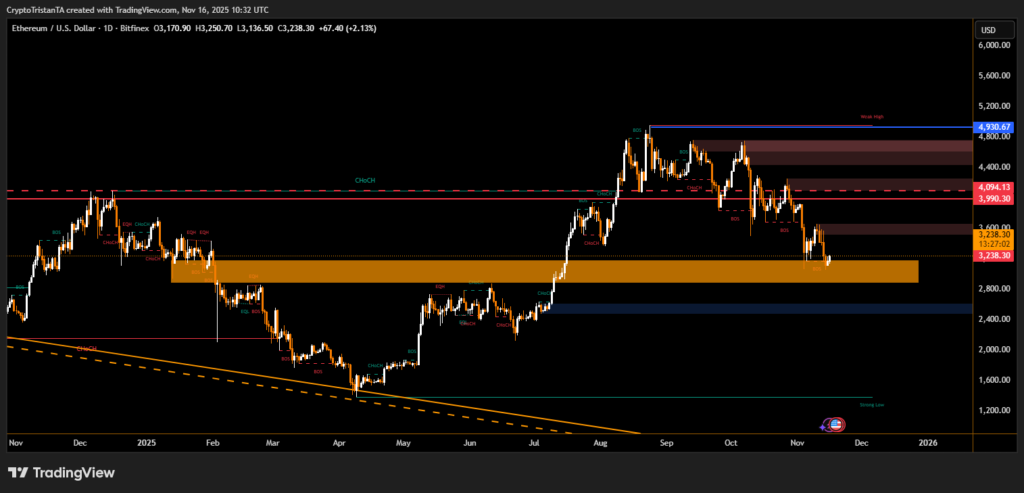 Meanwhile Ethereum also pulled back, hovering near the US $3,600 mark as investors reevaluated risk.