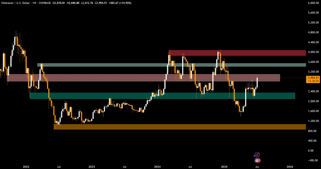 Meanwhile, resistance remains strong near the $3,000 psychological barrier, a level Ethereum has attempted to break multiple times in recent weeks. A daily close above $3,000 could trigger bullish momentum, with the next upside target around $3,120 based on recent swing highs.