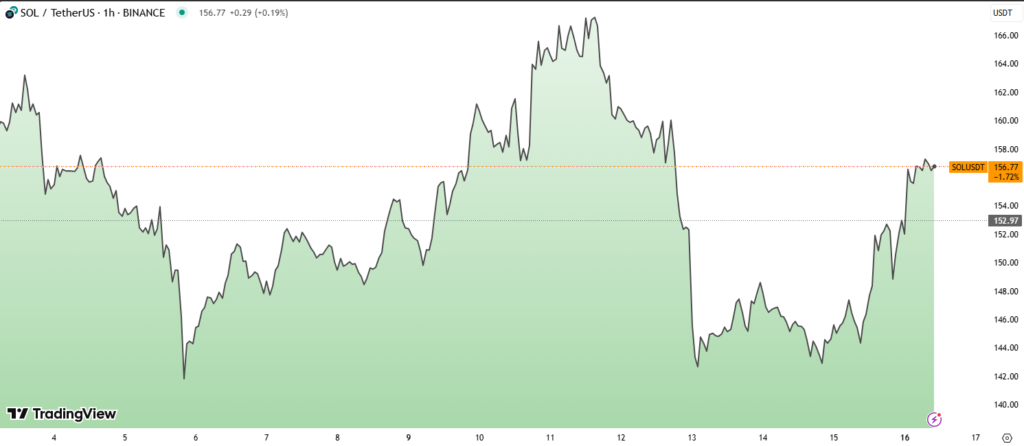 Solana (SOL) is trading higher today, climbing 9.5% in 24 hours to reach $157, driven by ETF optimism, rising institutional interest, and a bullish chart setup. With trading volume surging over 100% to $4.5 billion, momentum is clearly on the bulls’ side.