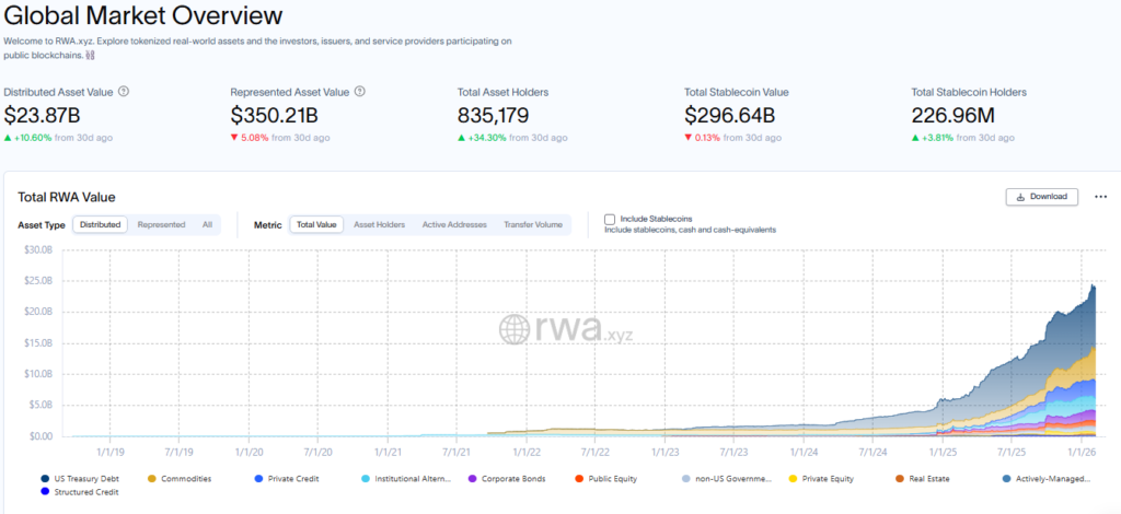 Tokenized RWA onchain value over the past year.: RWA.xyz