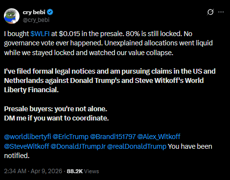 Some self-identified presale participants have issued legal notices in the United States and the Netherlands, although no verified lawsuits have been confirmed.