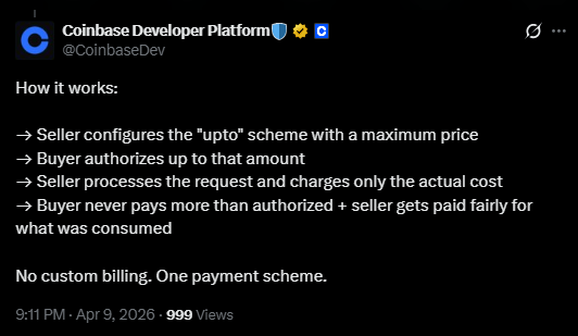 Previously, x402 only supported exact fixed pricing, which worked for deterministic APIs but failed for services where costs vary based on token usage, compute time, or query complexity. The new model allows sellers to set a maximum price while buyers authorize spending up to that limit, with final costs based on actual resource usage.