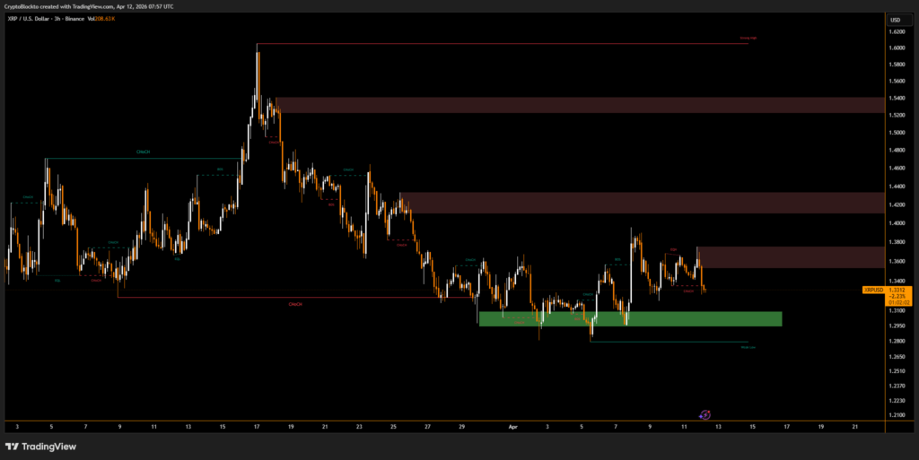 If XRP fails to hold the $1.33 support level, analysts warn that the next downside targets could fall within the $1.32 to $1.31 demand zone, keeping the broader downtrend intact.