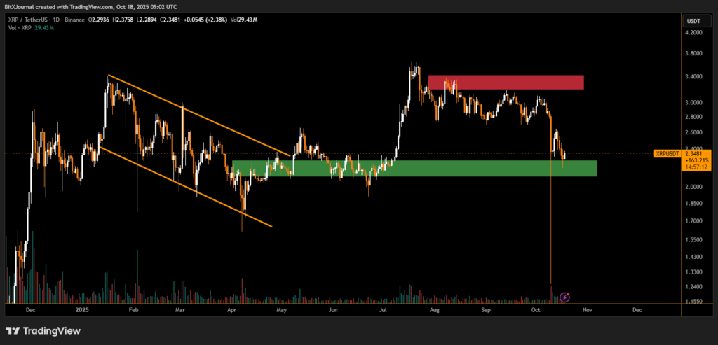 XRP managed to stabilize near $2.35 after an early dip in the session, recovering modestly as traders assessed global risk sentiment and upcoming SEC deadlines related to spot XRP ETF applications. The cryptocurrency’s resilience came amid renewed U.S.–China tariff concerns, which rippled across both traditional and digital asset markets.