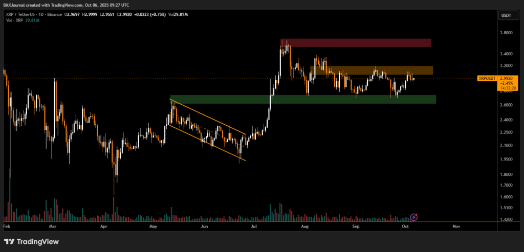 With market sentiment stabilizing and XRP reclaiming higher lows, technical analysts see the next few sessions as crucial. A decisive close above $3.25 could confirm the return of medium-term bullish control, while failure to hold $2.70 may extend consolidation.