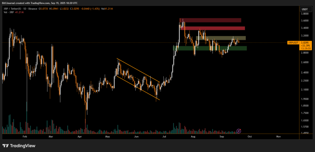 The cryptocurrency market faced mild pressure today as XRP slipped by 3%, trading near $3.02 after testing upper resistance zones. Despite its strong rally in recent weeks, the token is now encountering selling pressure at crucial levels, leaving investors questioning whether a sustained breakout is on the horizon.