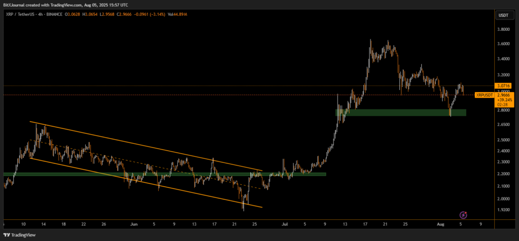 Despite this volatility, XRP held strong above the $3.00 support level.