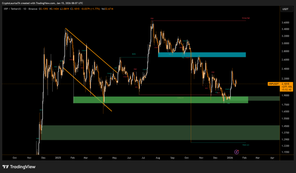 XRP declined roughly 2.3% to trade near $2.12, as heavy mid-session volume failed to push the token through resistance around $2.17. The pullback came even as positive regulatory developments and steady institutional demand continue to shape XRP’s broader outlook.