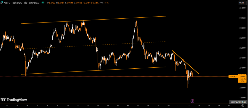 - Sharp sell-off dropped XRP to $2.011 (6.33% intraday decline) amid global economic uncertainty.