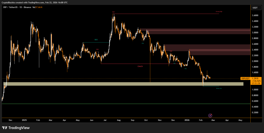 Despite increased ledger activity and heavy distribution, XRP remains below key technical resistance levels. For a sustained rebound to materialize, spot demand must strengthen while sell pressure gradually declines.
