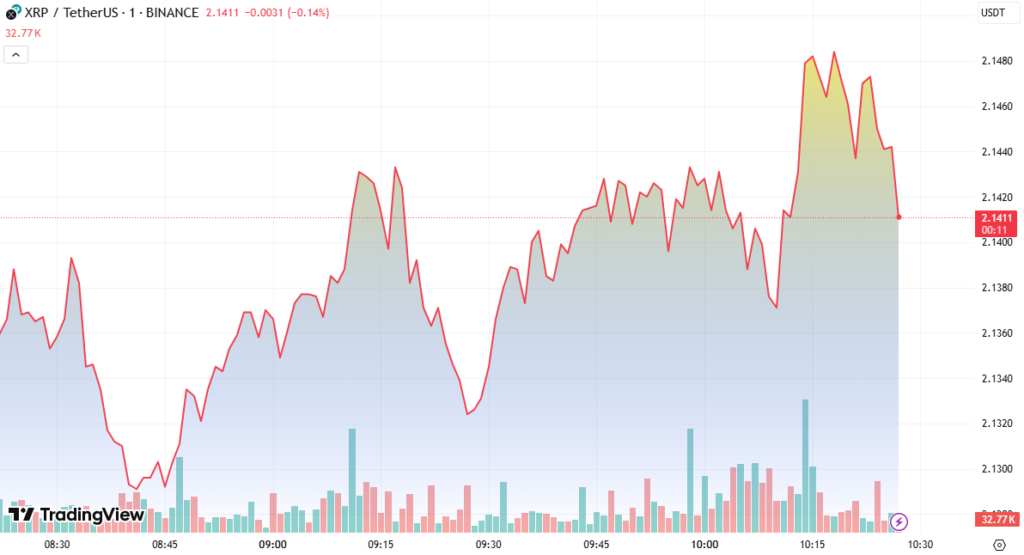 XRP dropped as much as 6% over the last 24 hours, briefly hitting a low of $2.09 before stabilizing near $2.14, reflecting a broader crypto market correction. The downturn follows rising global trade tensions and a wave of forced liquidations that have rattled investor sentiment across digital asset markets.
