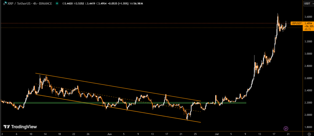 XRP has recently captured headlines with a sharp price rebound, sparking optimism across the crypto market. After hitting $3.66 on July 18, the token has entered a phase of sideways consolidation, currently trading near $3.45. So why hasn’t XRP broken through the psychological $4 level yet?