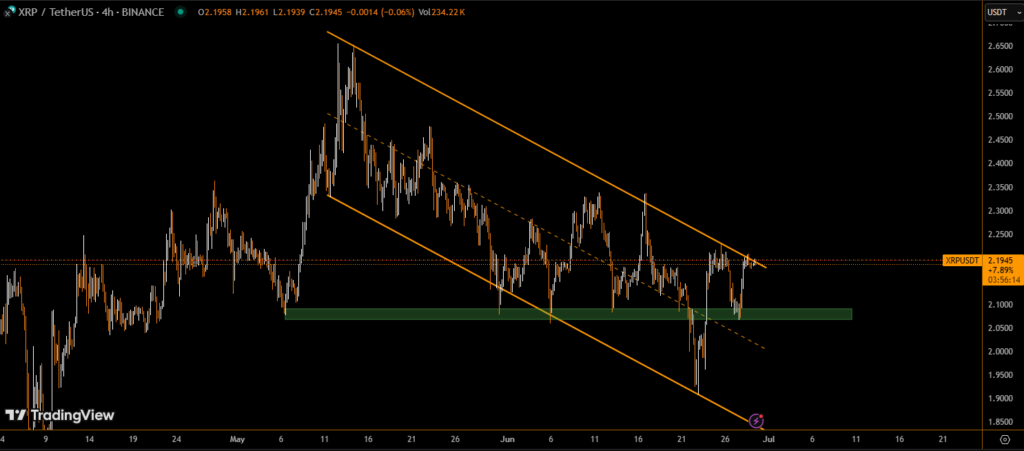 At the time of writing, XRP trades at $2.19, up only 0.33% in the past 24 hours. This tepid price action suggests that many investors are waiting for a clear technical breakout before re-entering the market.